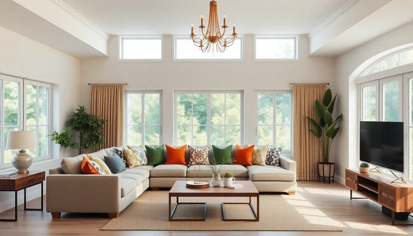Color schemes establish the mood within a living room. Warm tones, such as soft beiges and earthy greens, evoke comfort. Bold colors like deep blues or vibrant reds add energy and excitement. Selecting a cohesive palette ensures harmony, where shades complement rather than clash. Neutrals often provide a balanced backdrop that allows for colorful accents. Designers frequently use three to five hues to maintain visual interest without overwhelming the space. Incorporating color through wall paint, accessories, and textiles enhances the overall appeal.